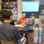 Jさん、HORIZONの仕組みや水中での注意点などを、実際にユニットの準備をご覧いただきながら理解を深めます。