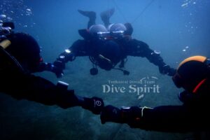 そんな中、ドライスーツでの初めてのサイドマウントKさんと、バックマウントでトレーニングのMさん、Jさん。